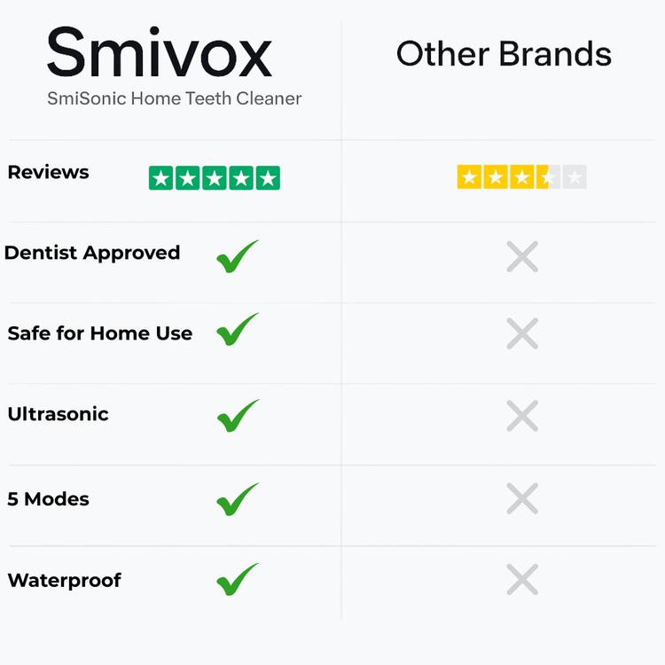 Smivox is dentist-approved, ultrasonic-powered, waterproof, and built with 5 unique modes — giving you the confidence no other brand can match.